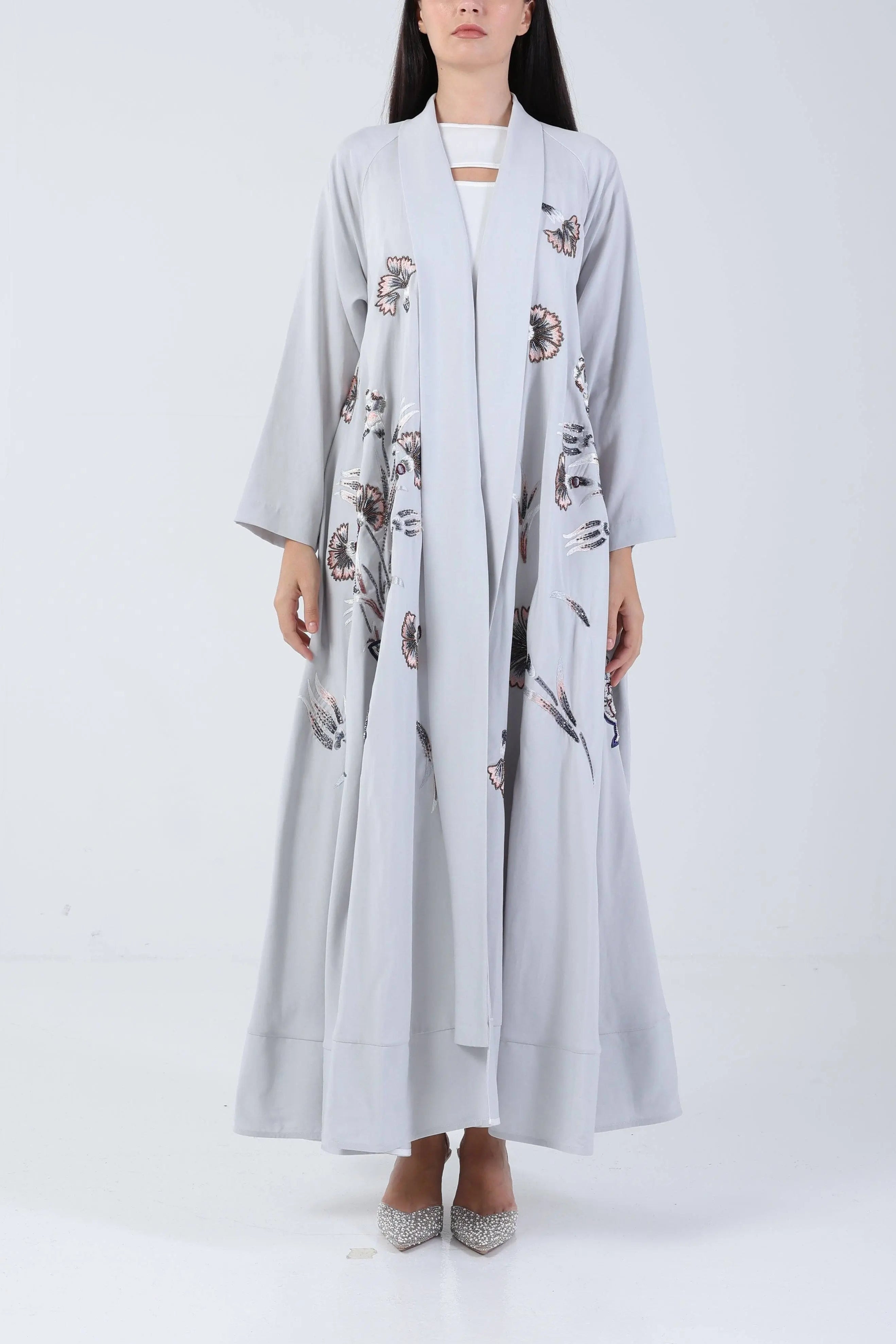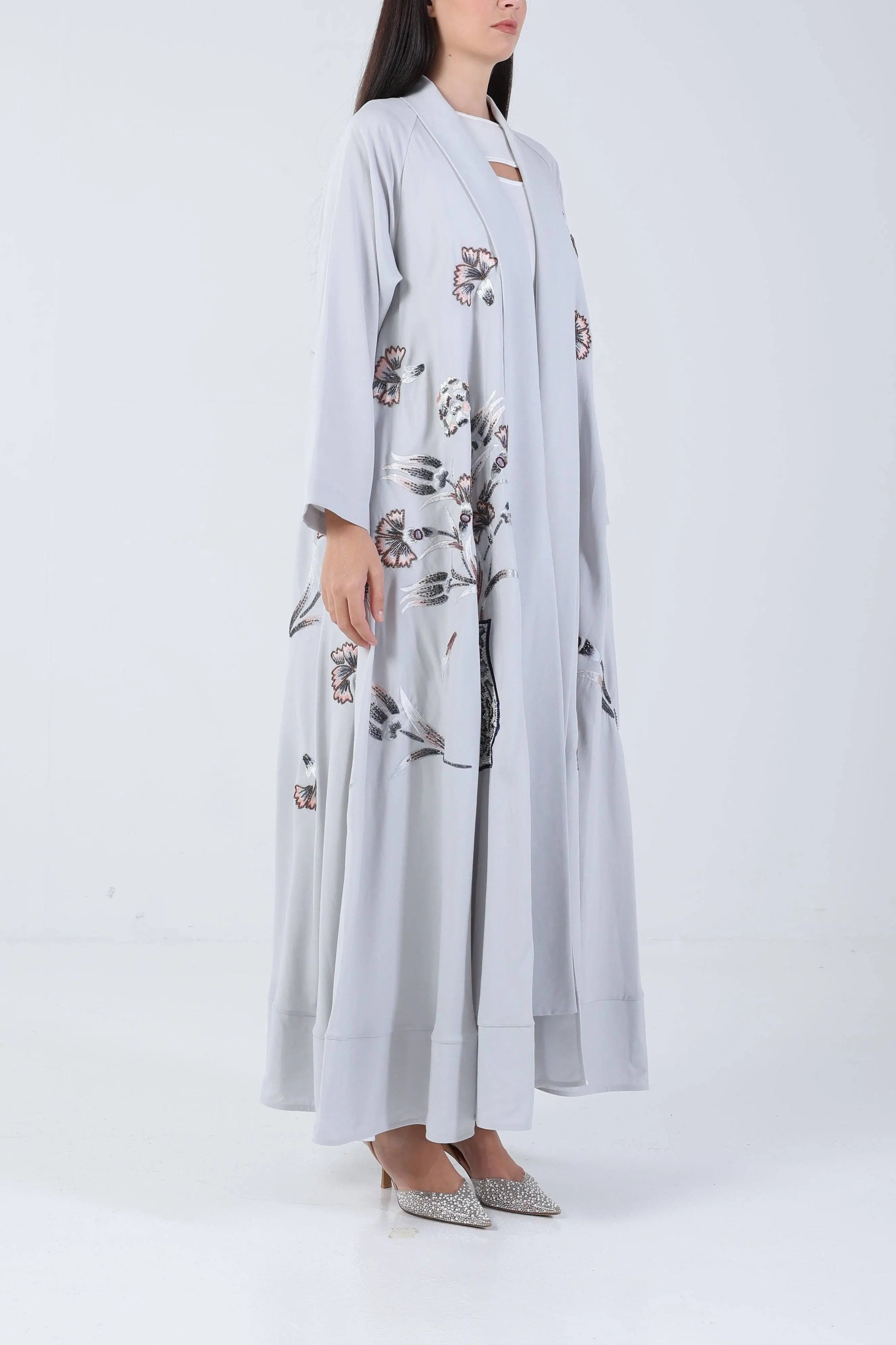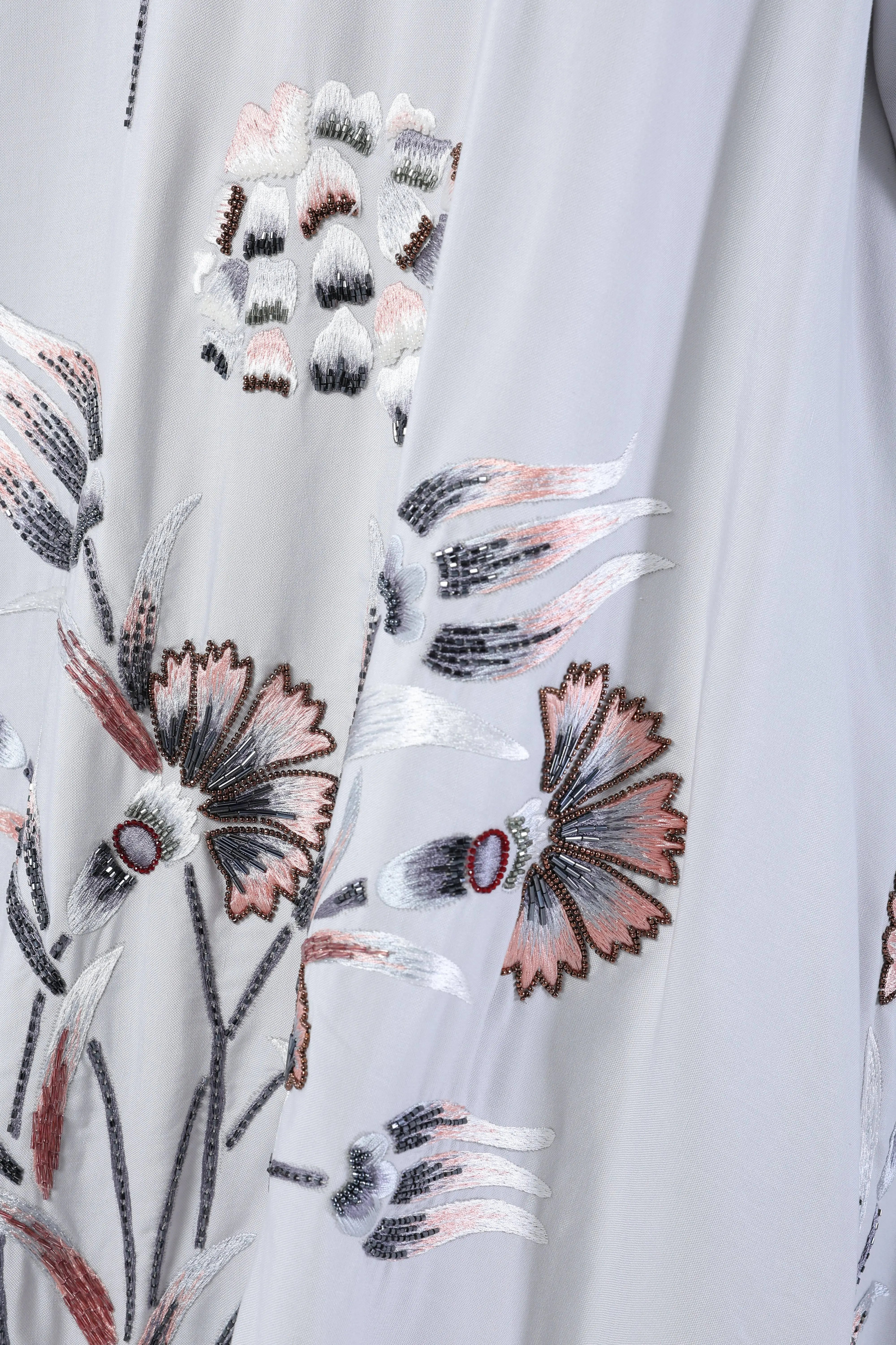 Hand embroidered Antique Chinese Vessel design on Grey Cotton fabric