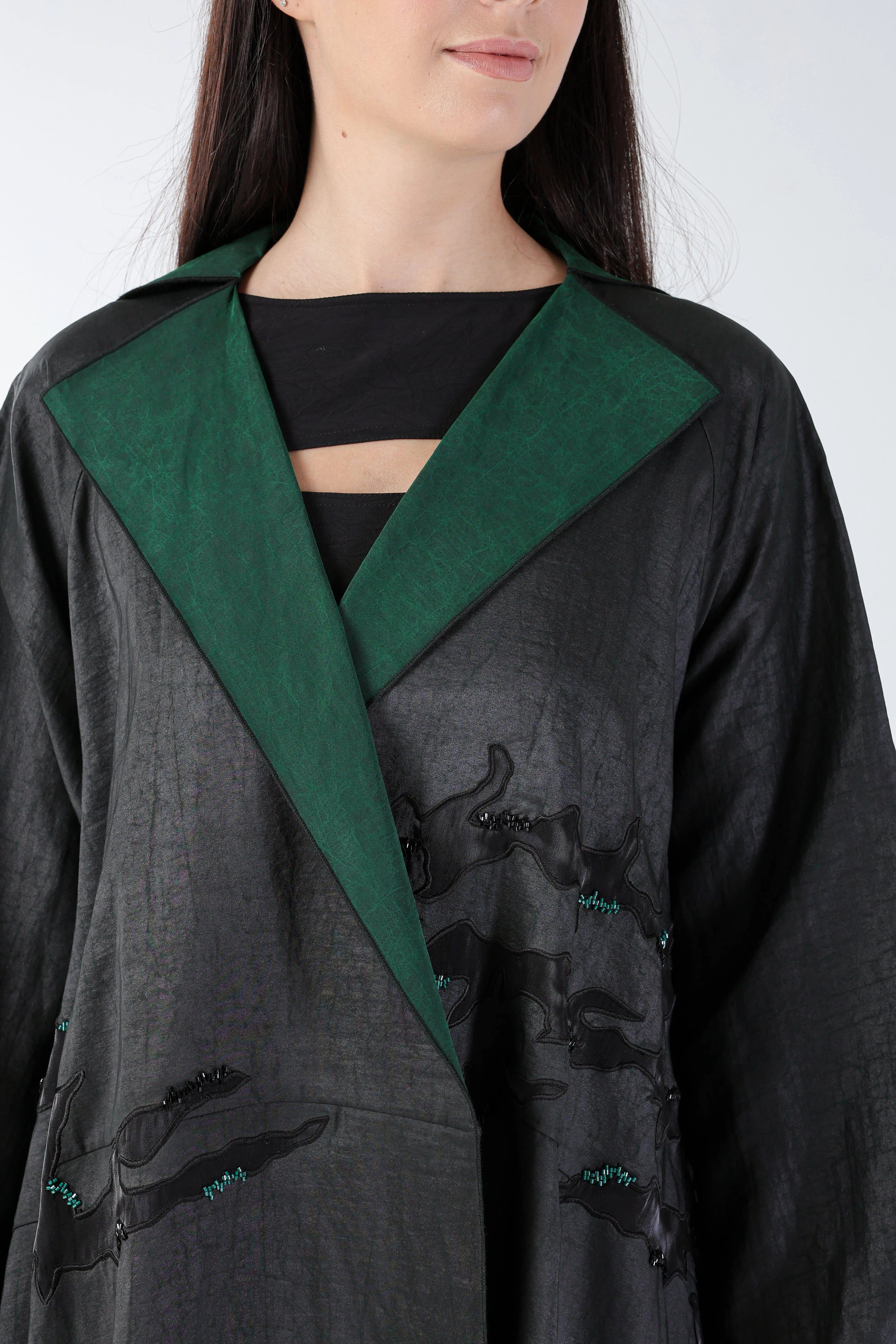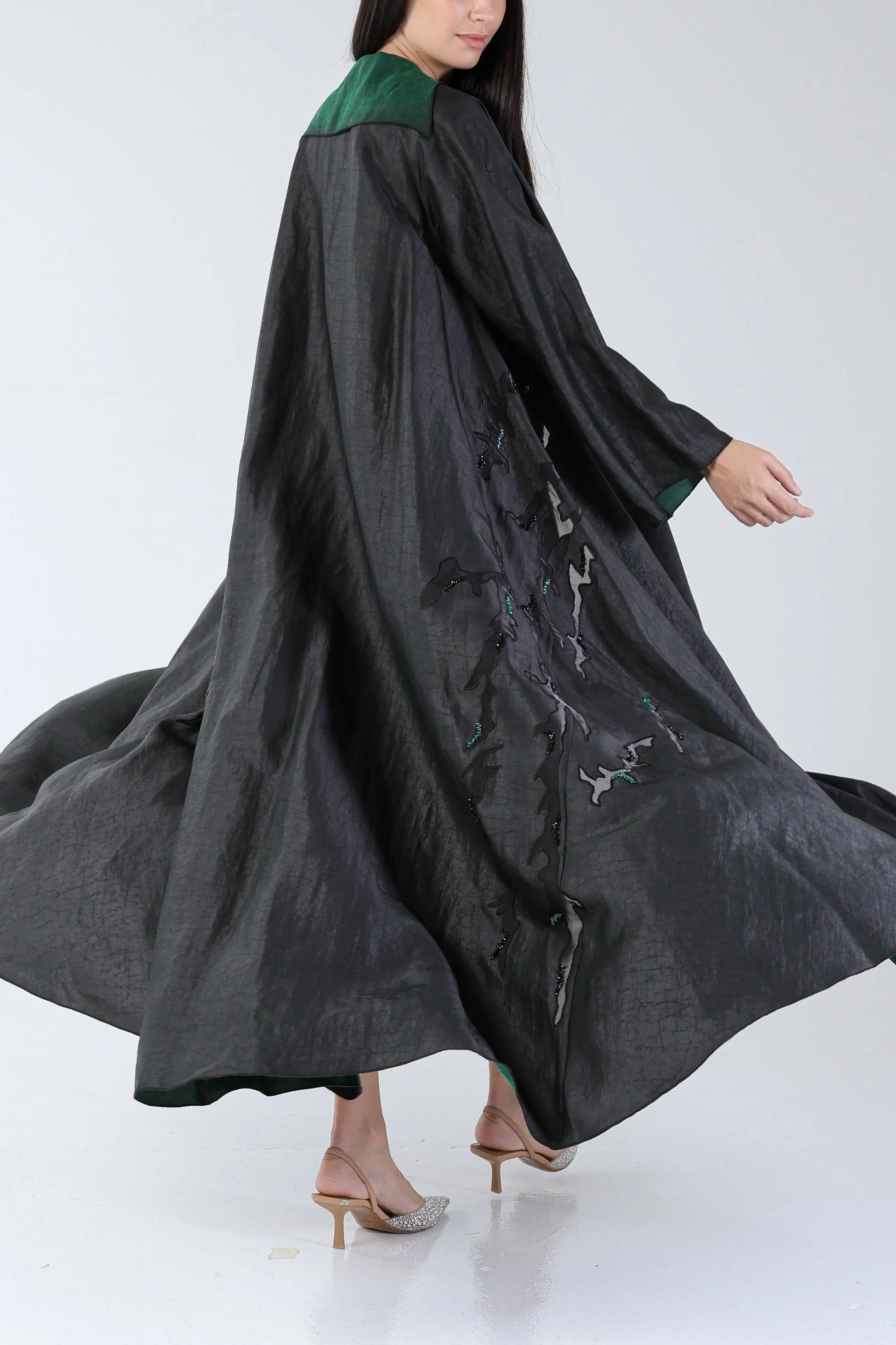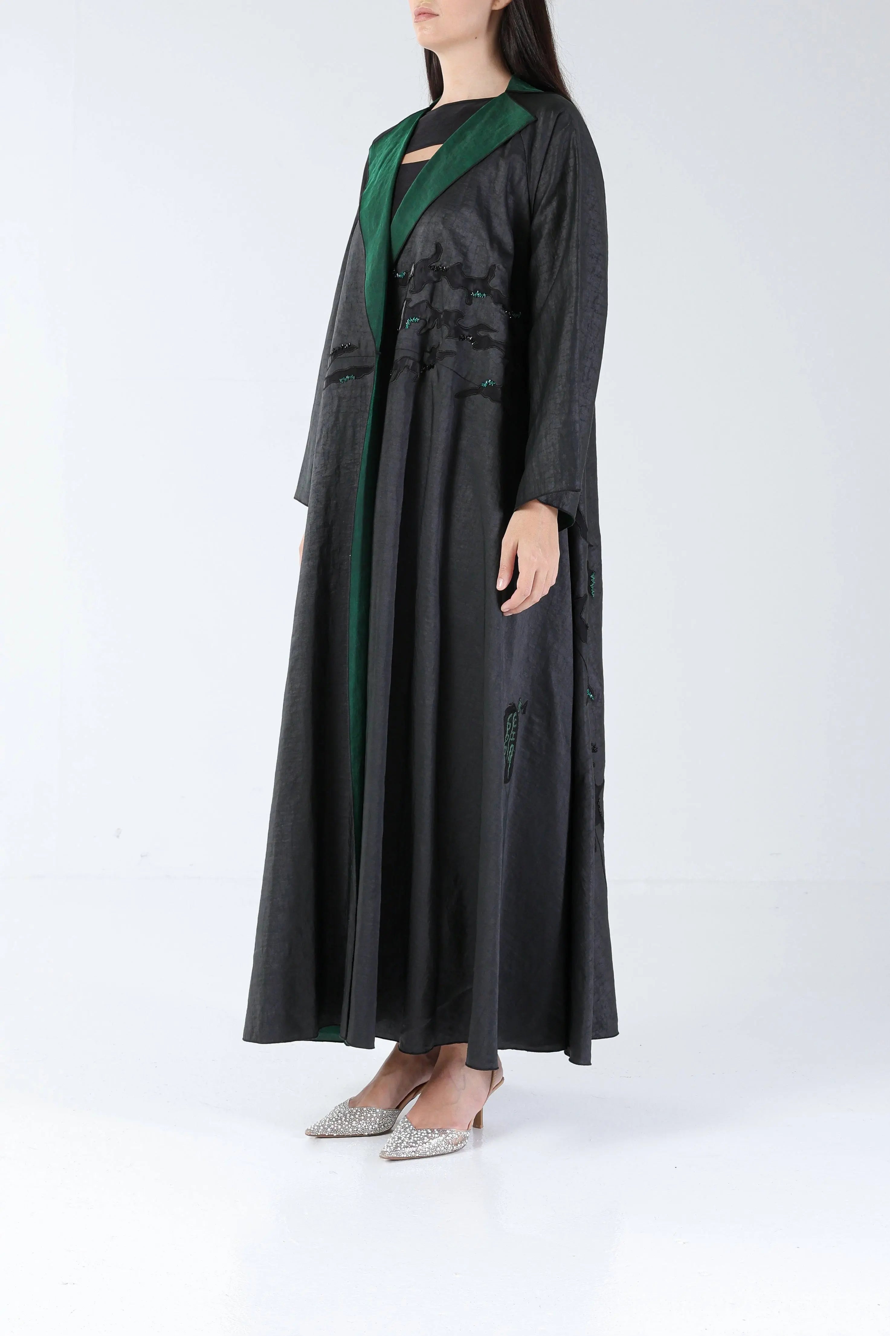 Hand embroidered Creek design on Black & Green Pure Silk material