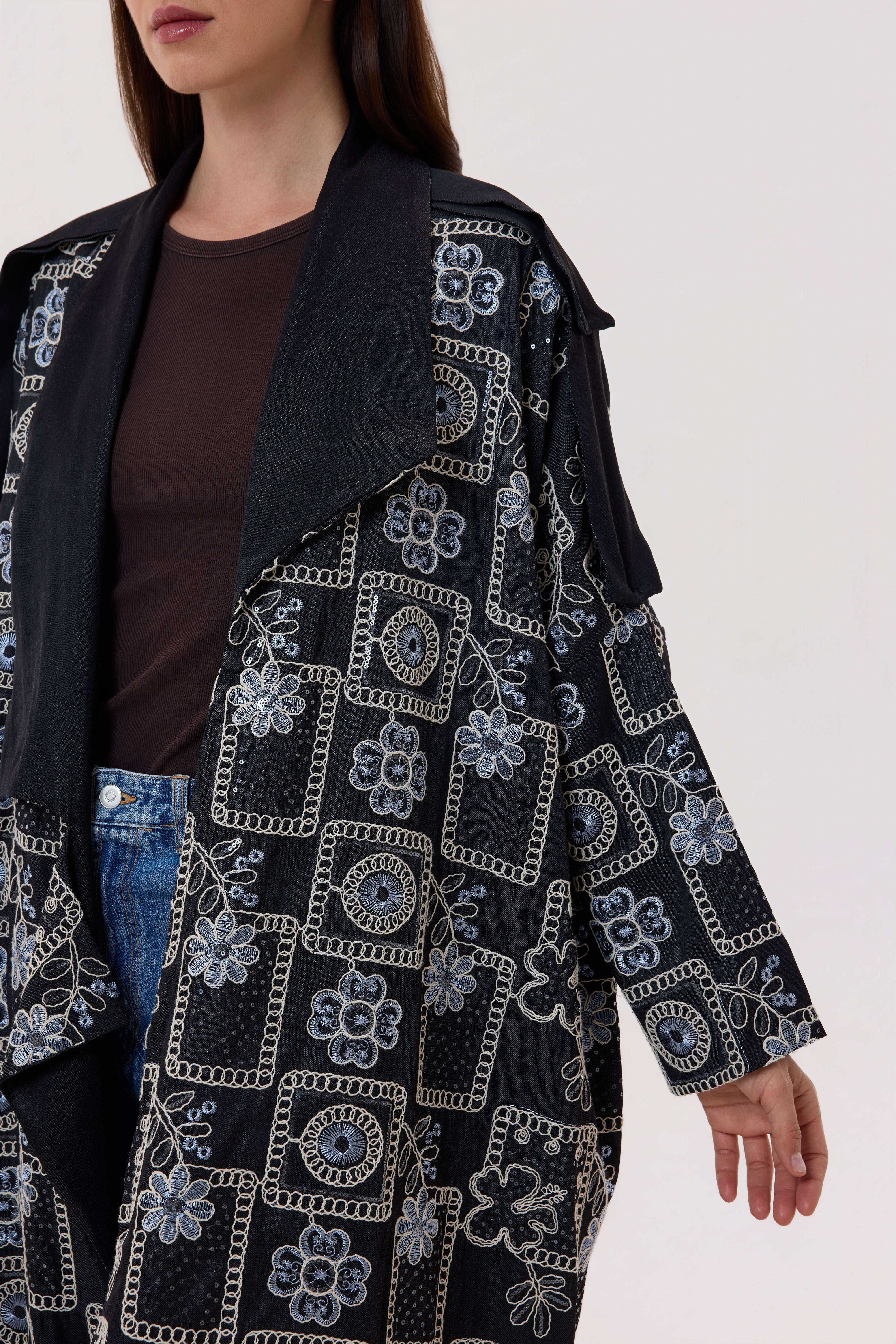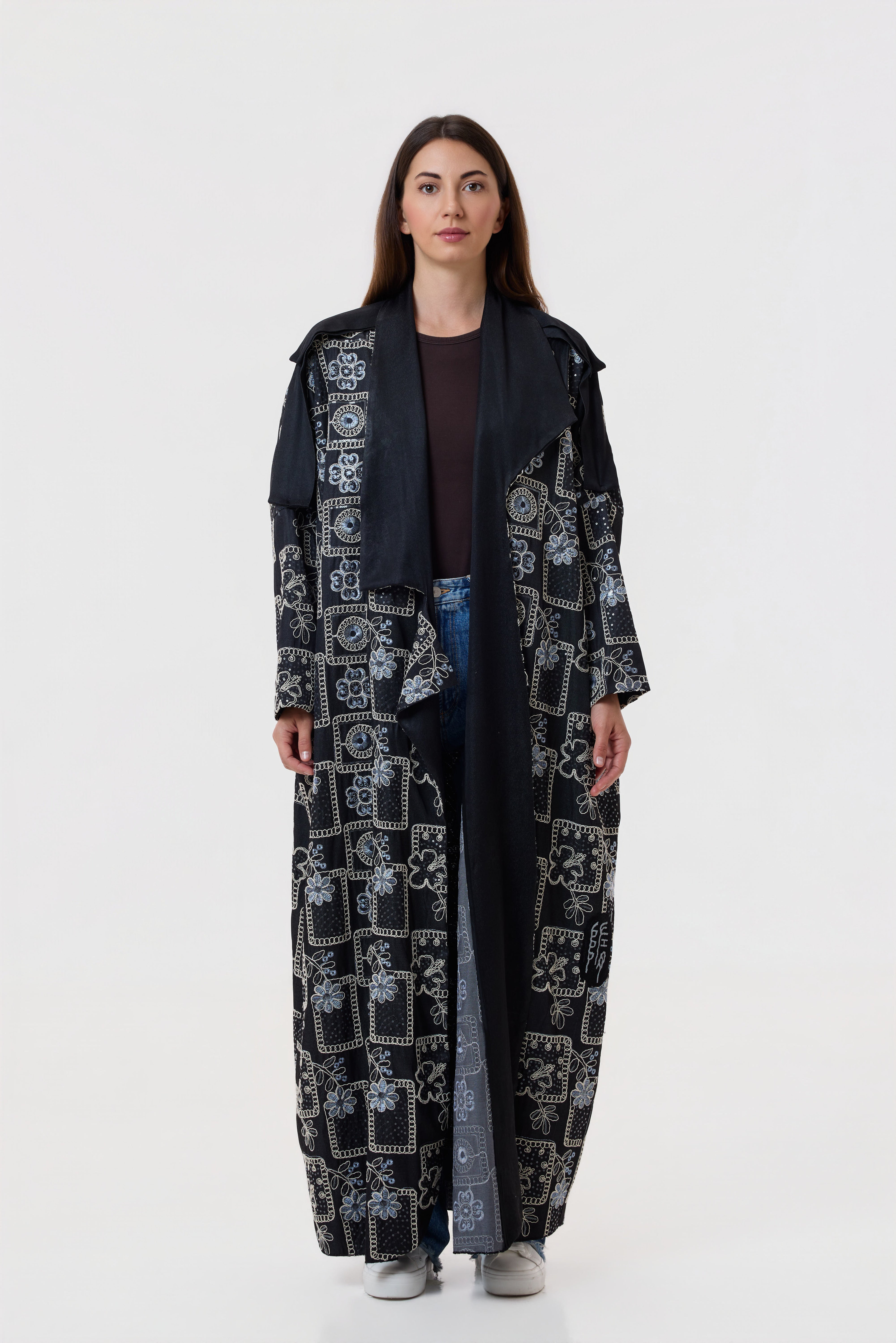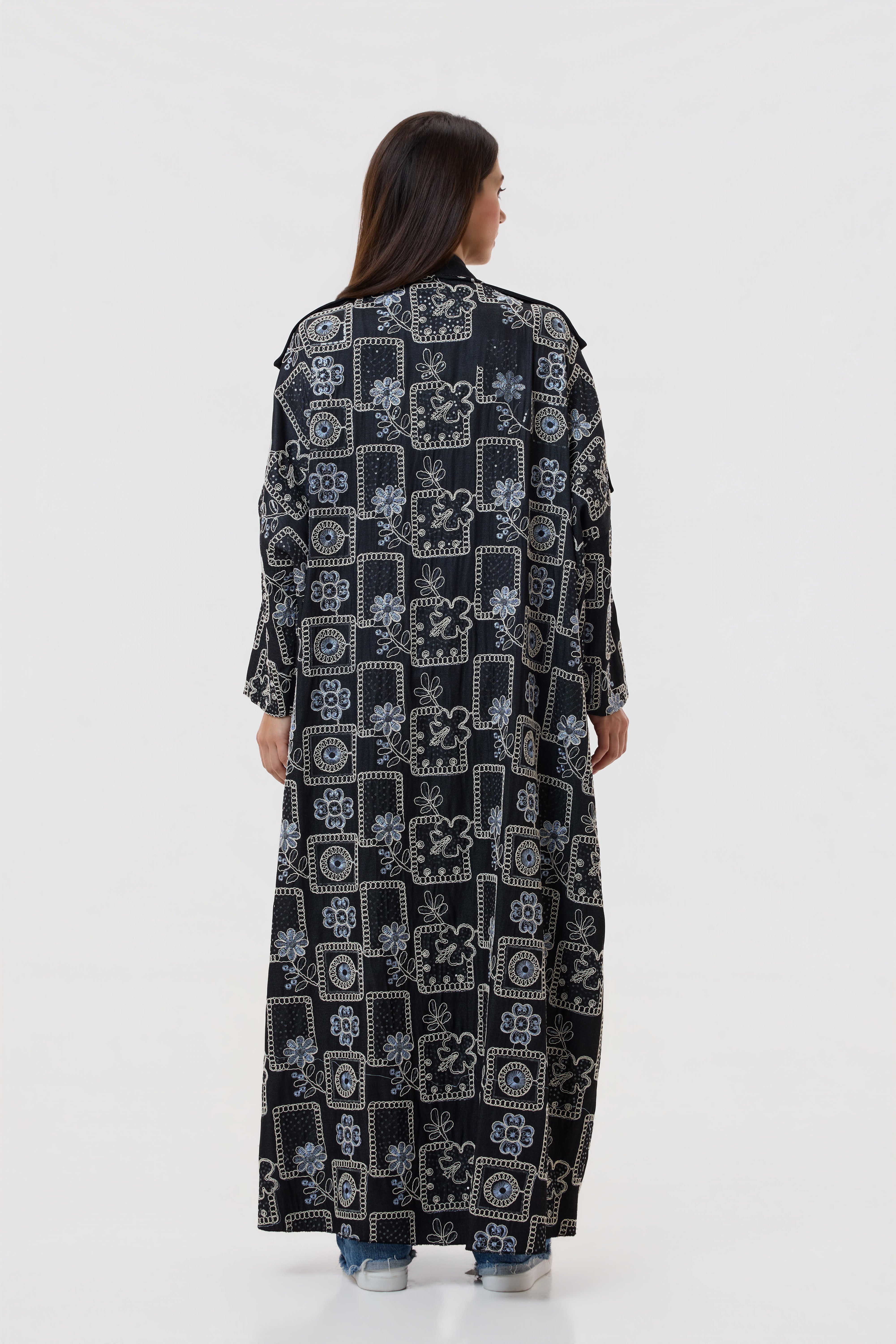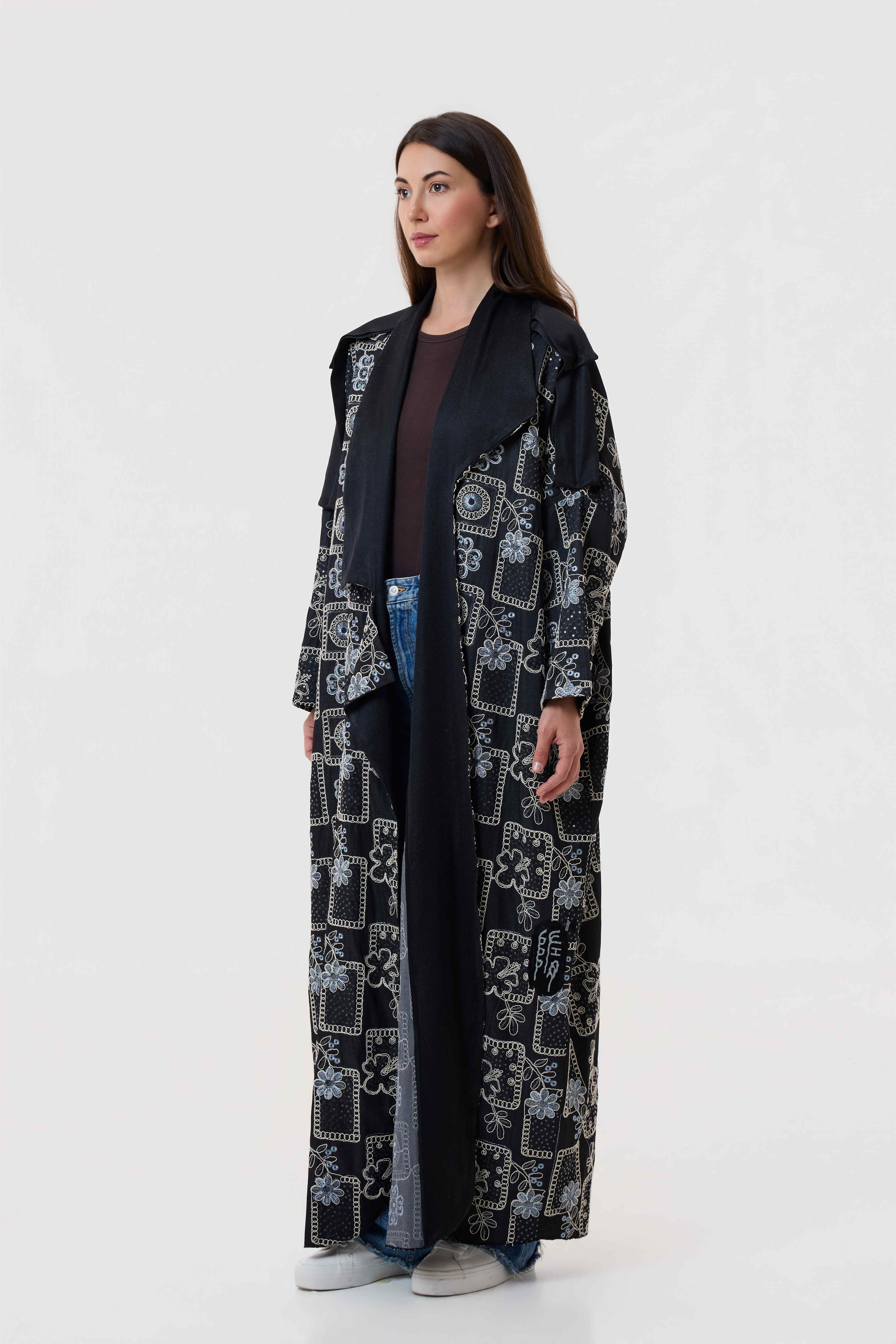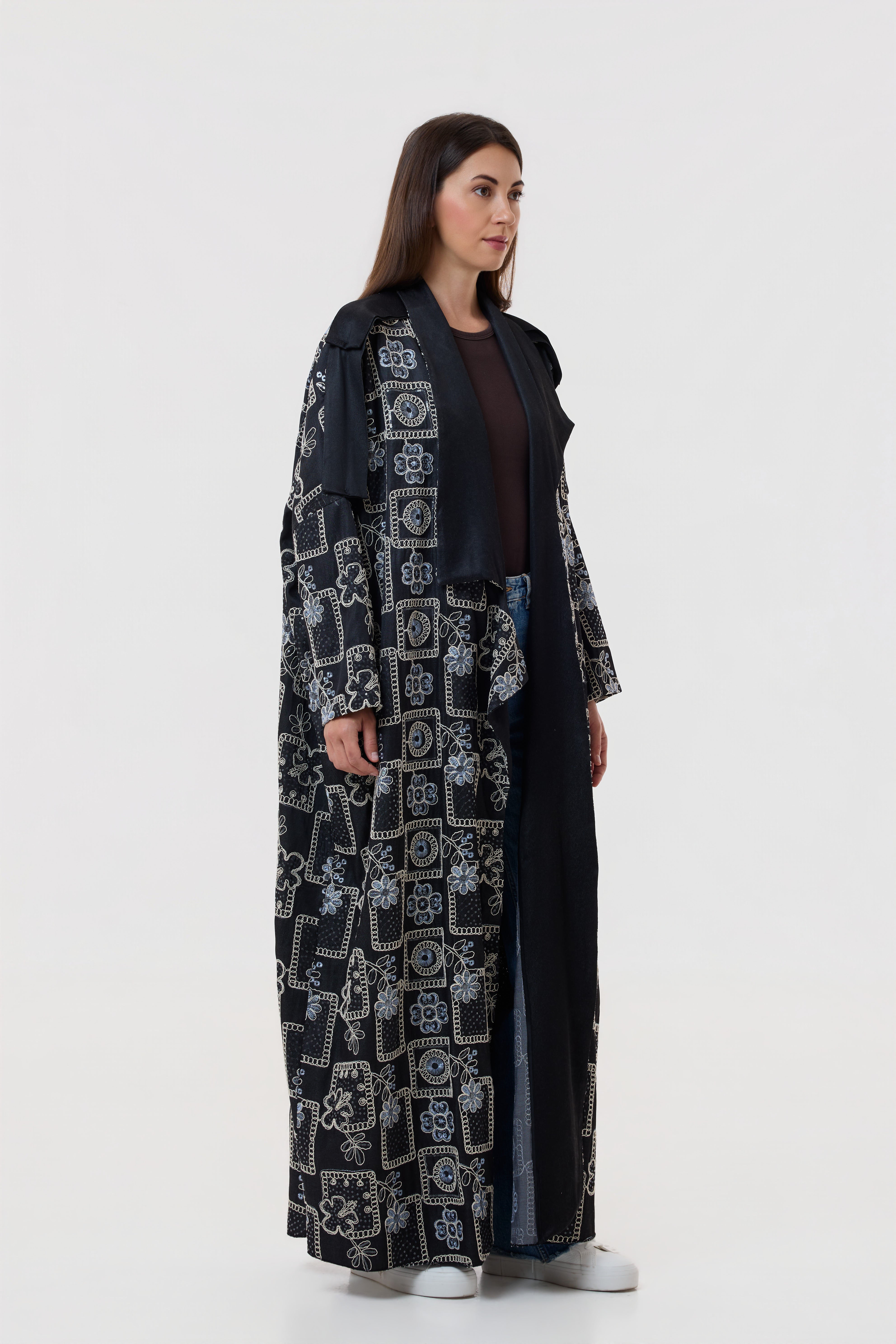 Designed in soft black tencel with a denim-inspired feel, this daily abaya is enhanced with floral embroidery for effortless elegance.