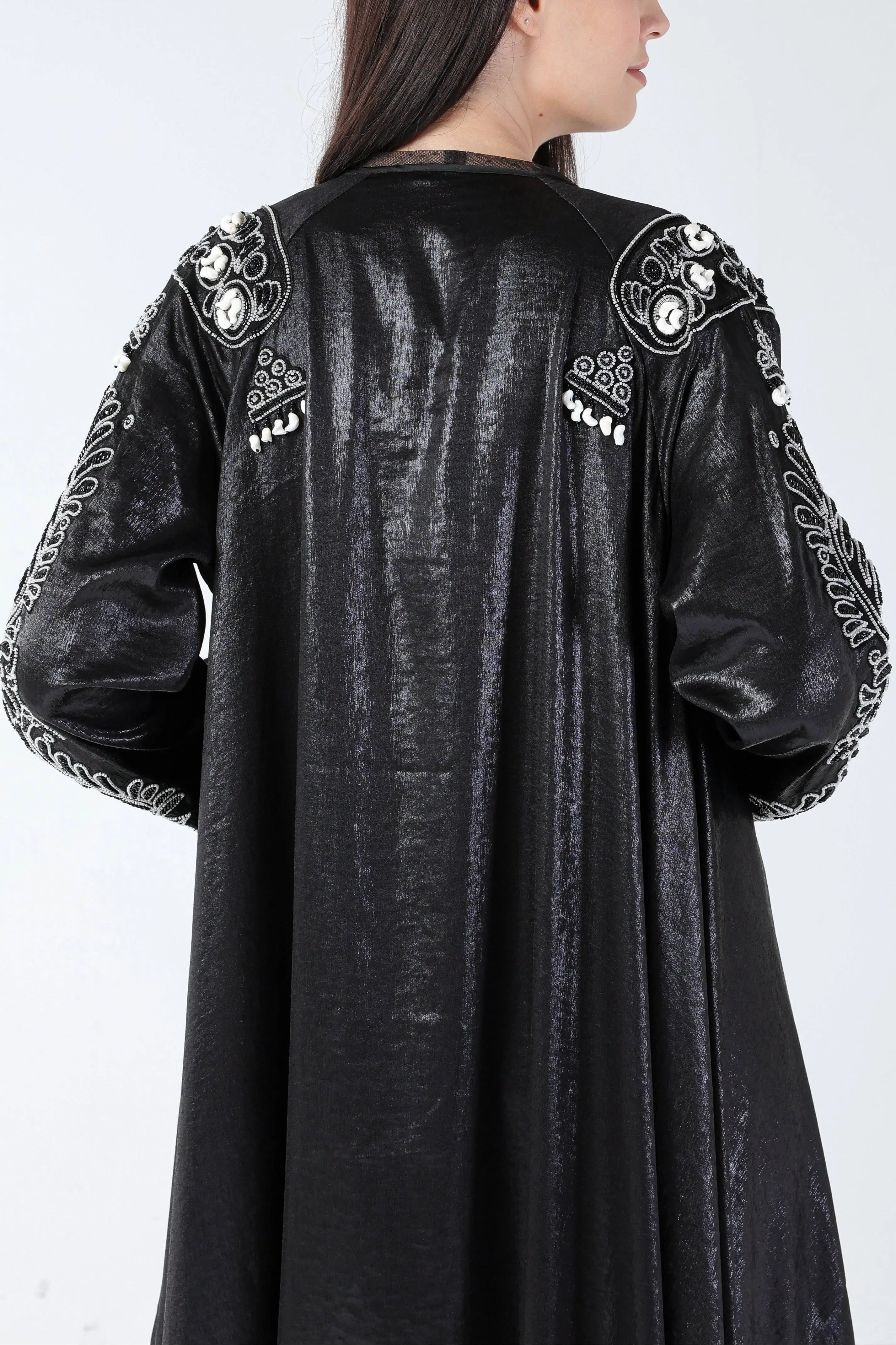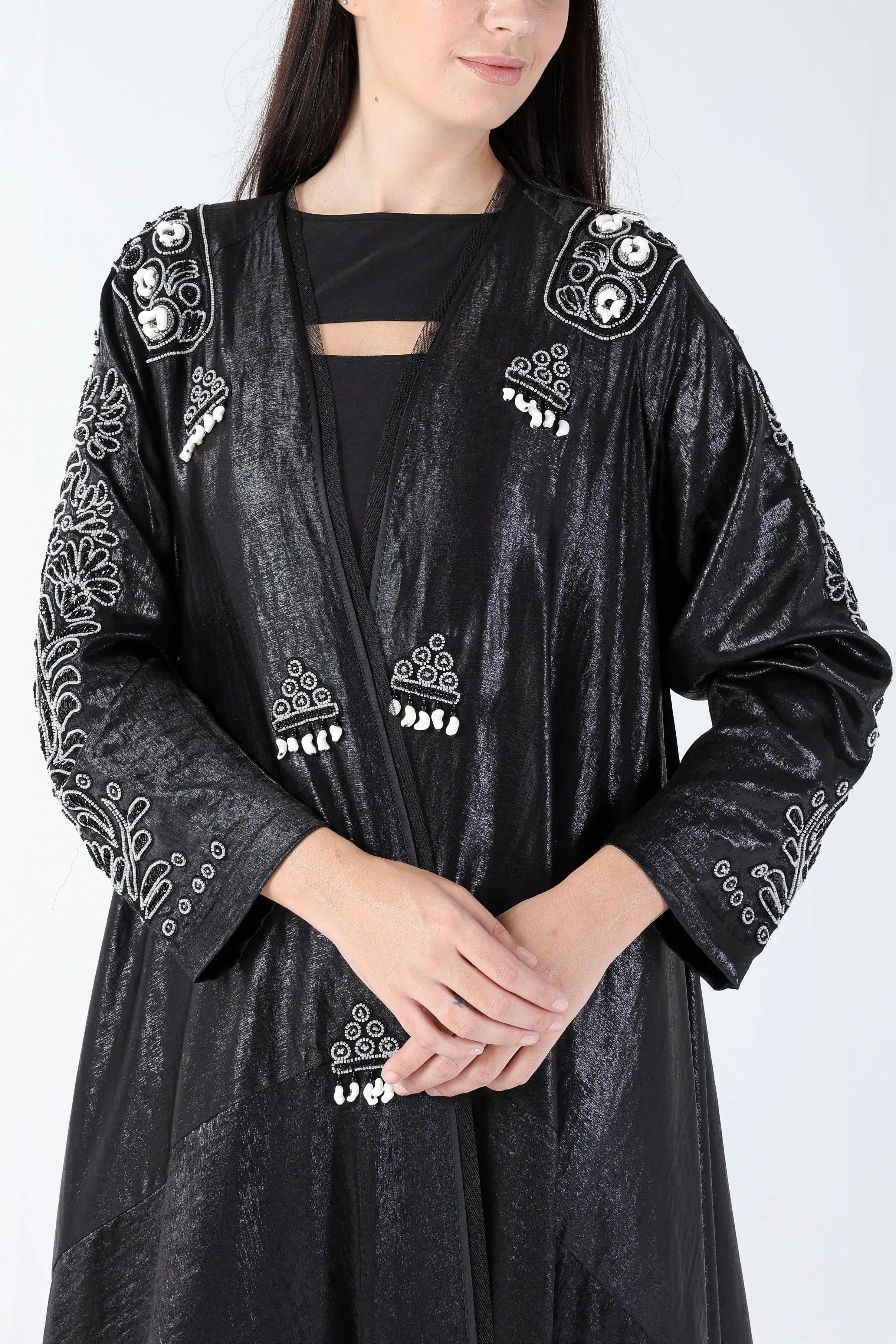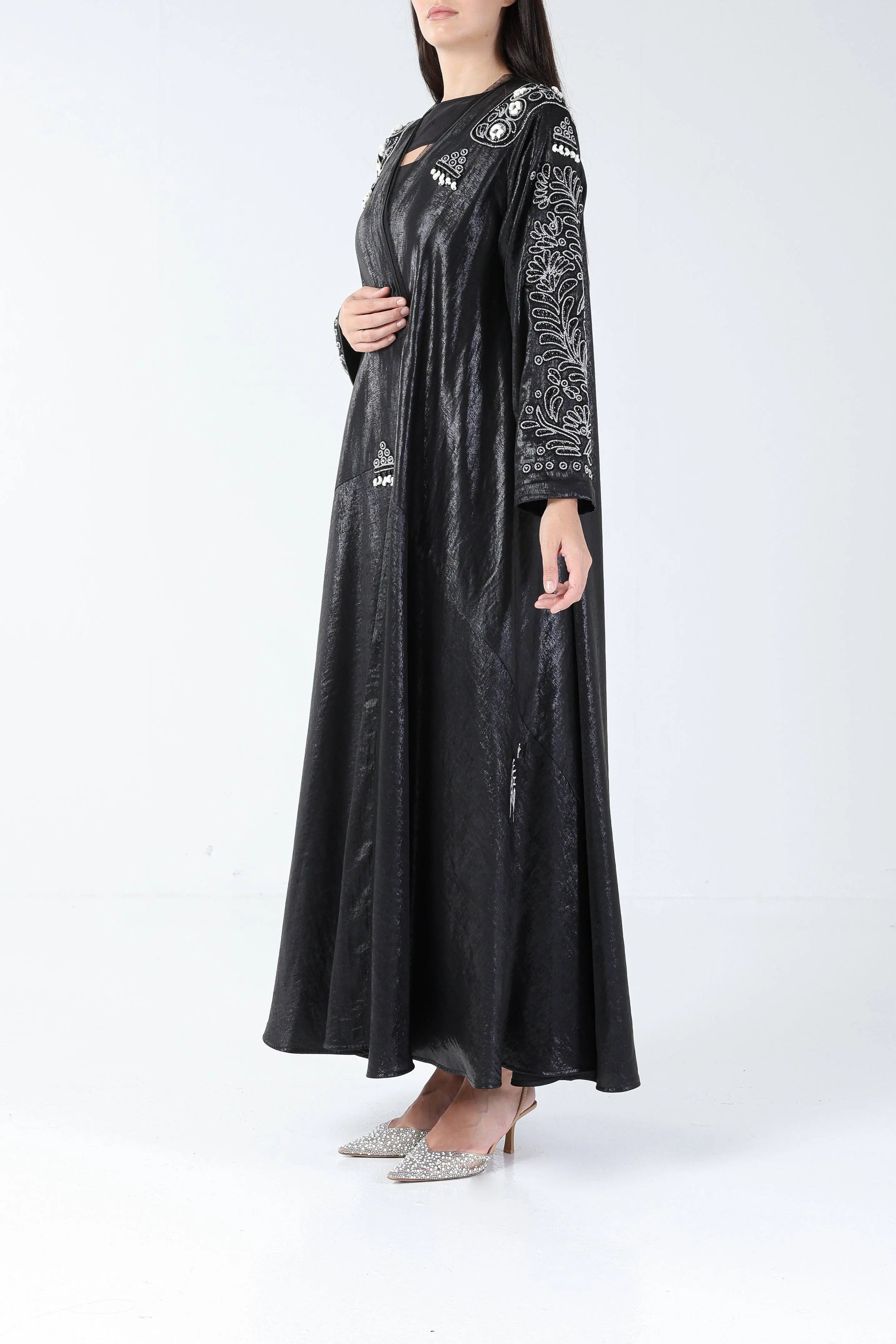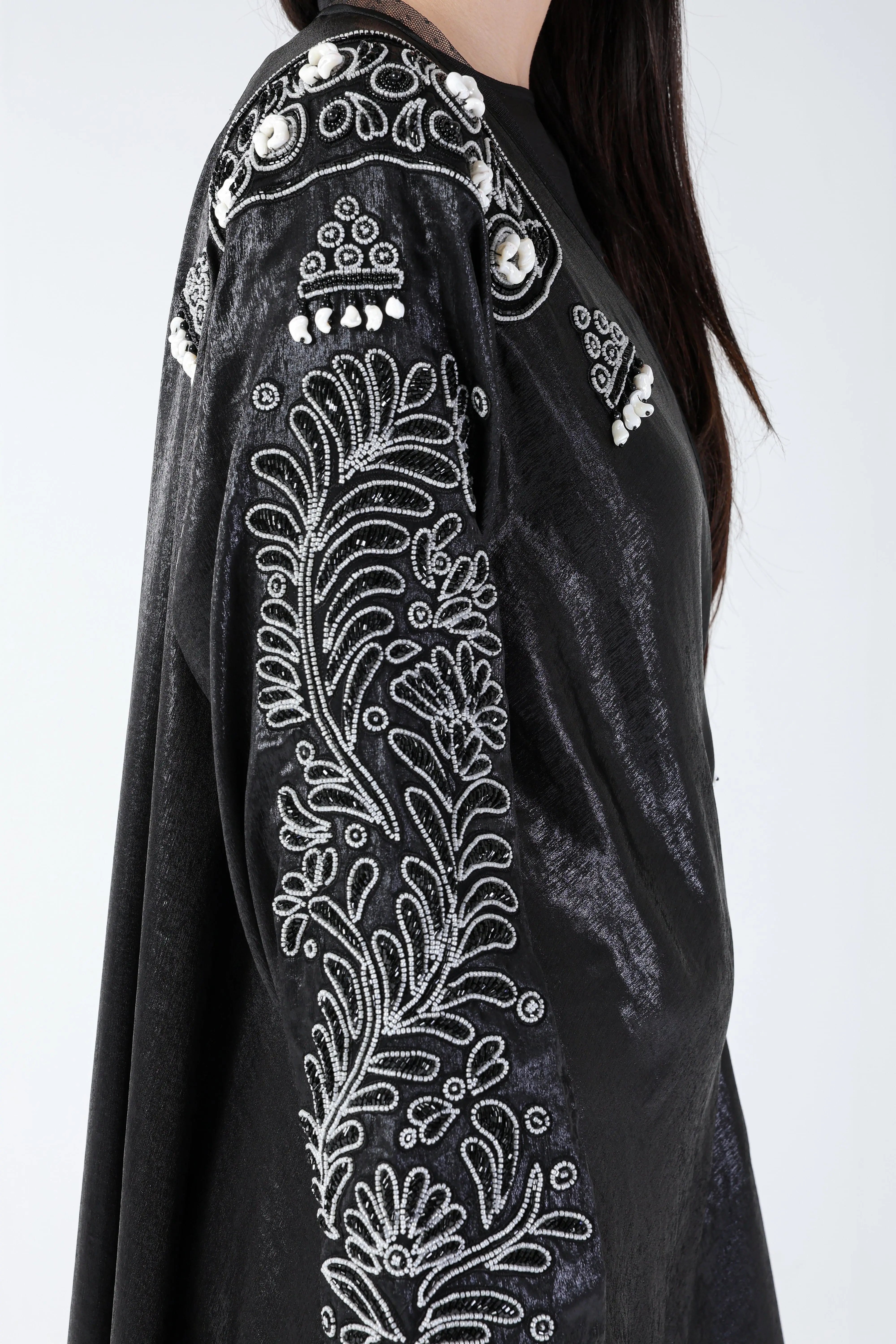 Hand embroidered Greenery design on Black Metallic Velvet Material